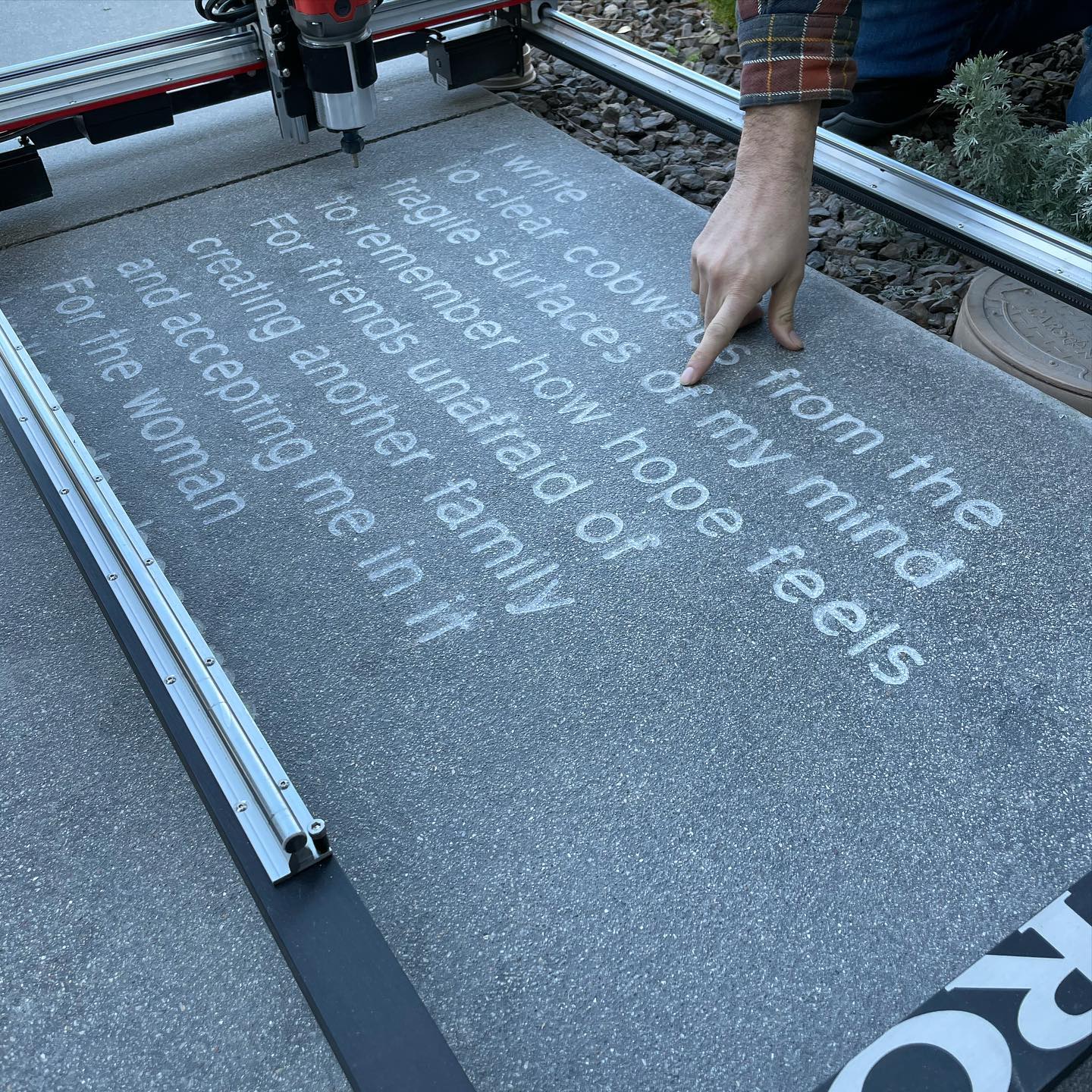 Words in Stone is the only company in the South Island of New Zealand to offer 100% portable CNC engraving on concrete, stone and epoxy surfaces of any image, text or logo.